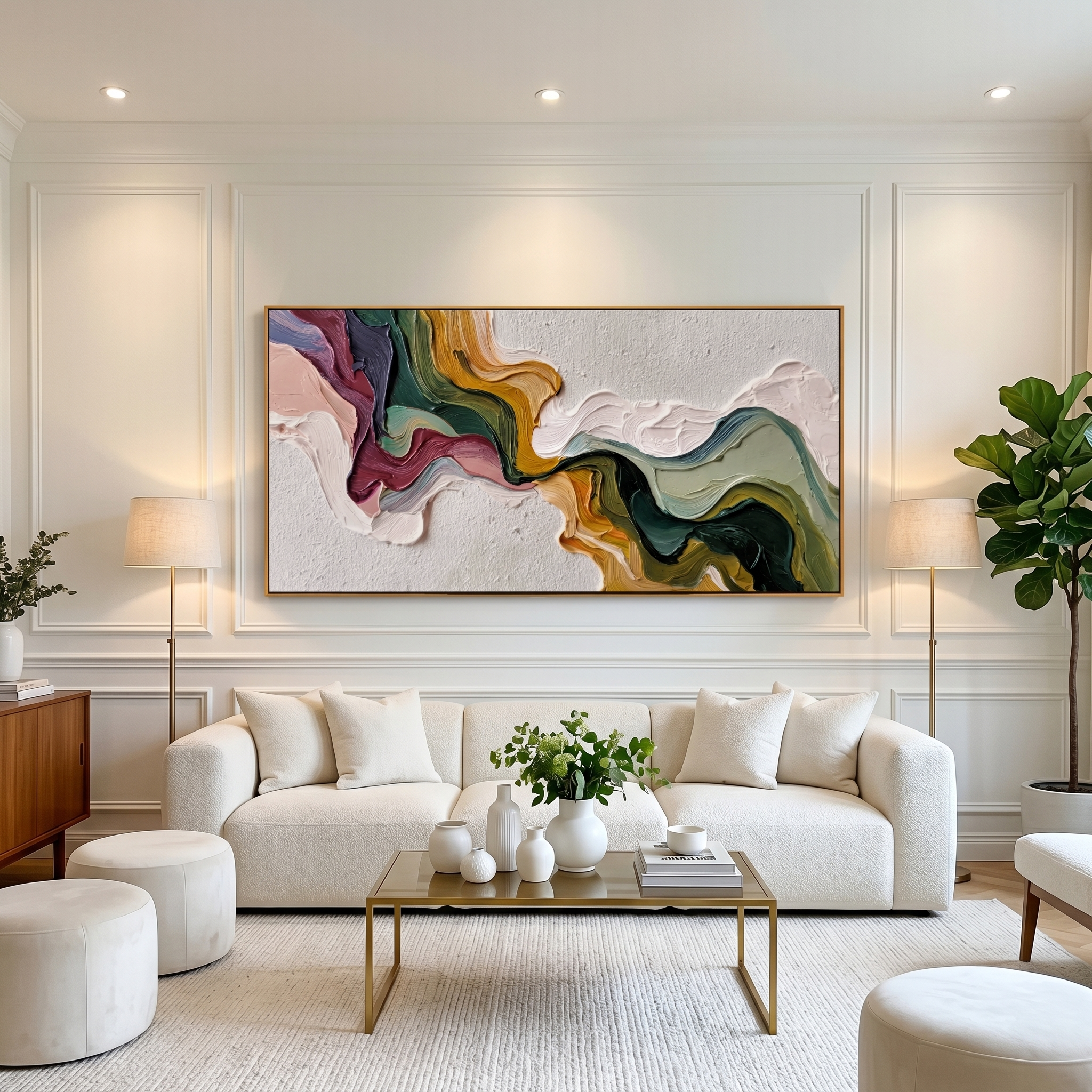 Finally, the moment of arrival. Once hung, the painting transforms your wall and space, infusing it with personality, light, and the quiet power of creation.
